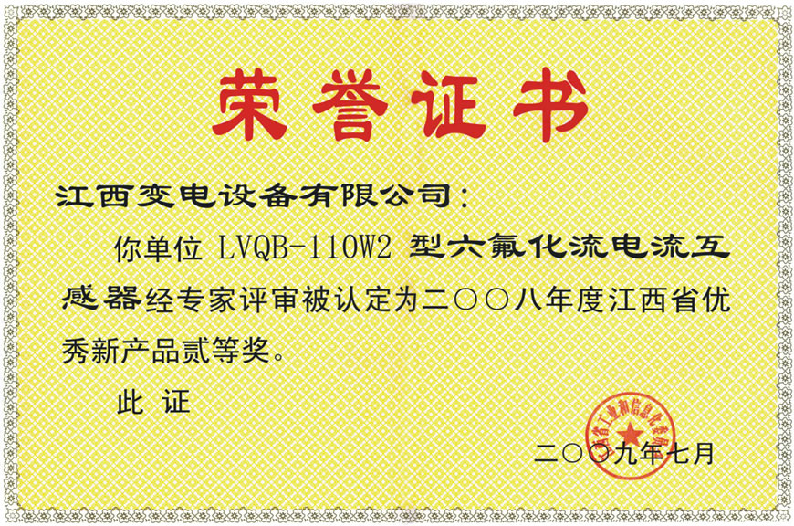江西省優(yōu)秀新產(chǎn)品二等獎:LVQB-110W2型六氟化流電流互感器(點擊下載)