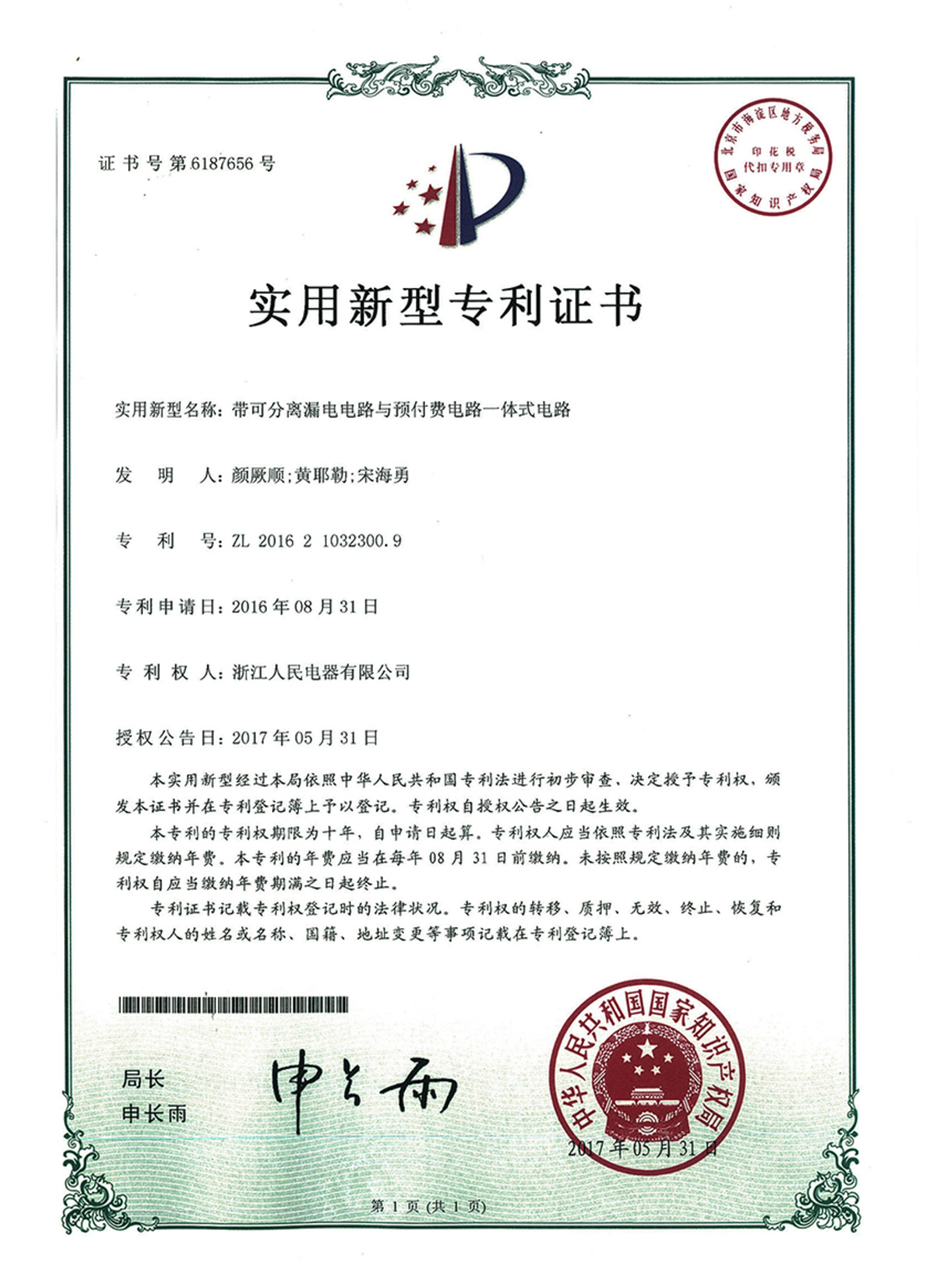 實用新型專利證書:帶可分離漏電電路與預(yù)付費電路一體式電路(點擊下載)