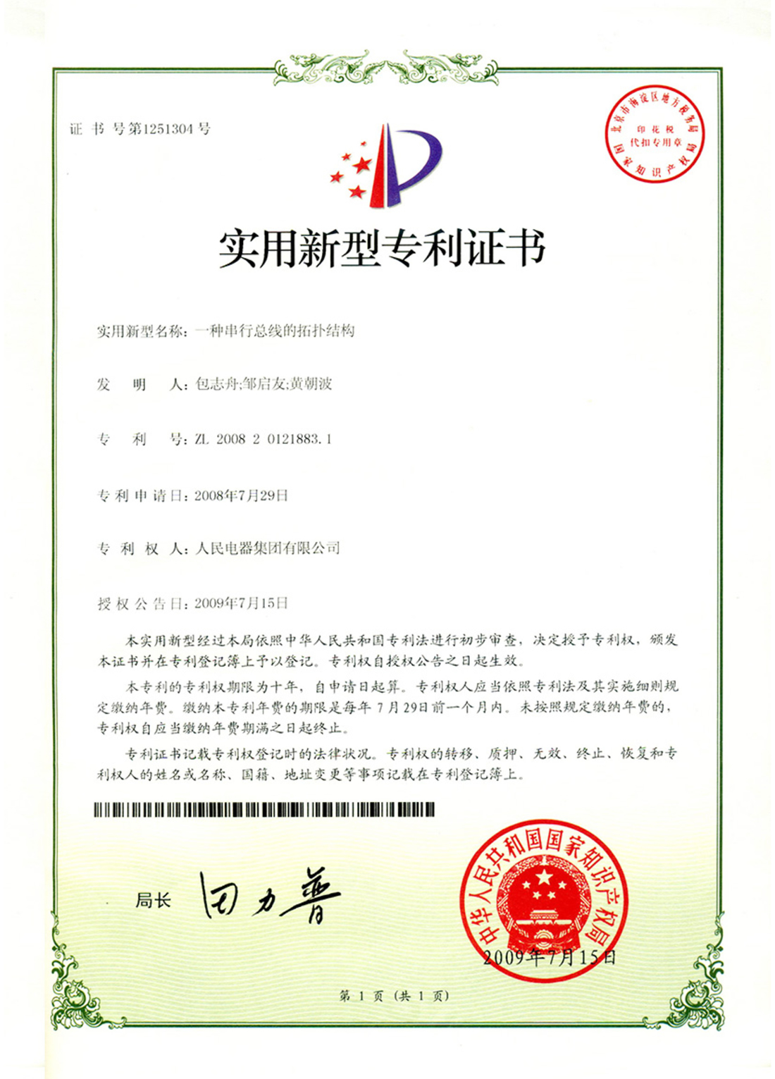 實用新型專利證書:一種串行總線的拓撲結構(點擊下載)