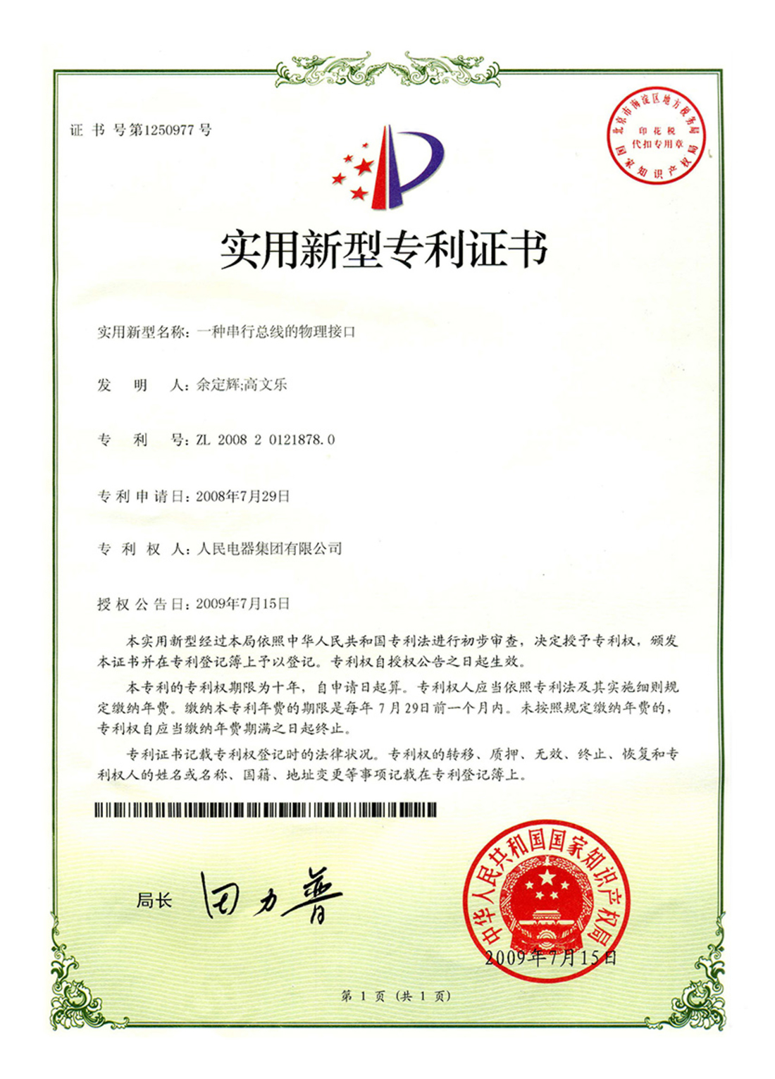 實用新型專利證書:一種串行總線的物理接口(點擊下載)