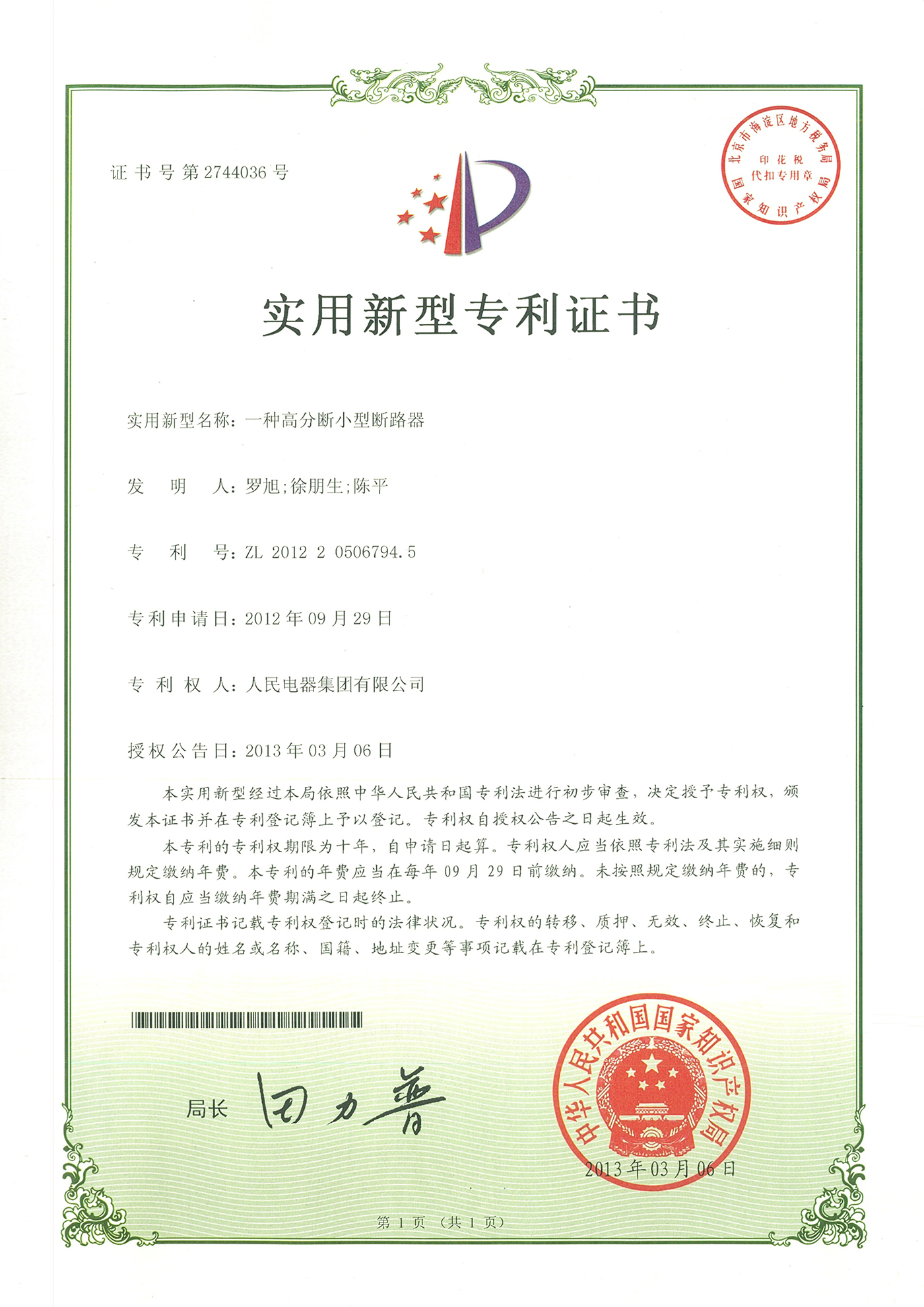 專利證書
