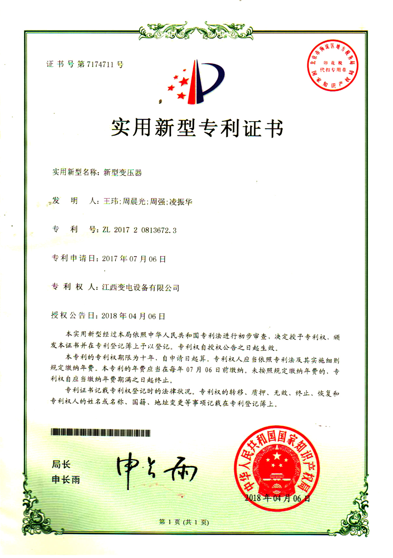 實(shí)用新型專利證書:新型變壓器(點(diǎn)擊下載)