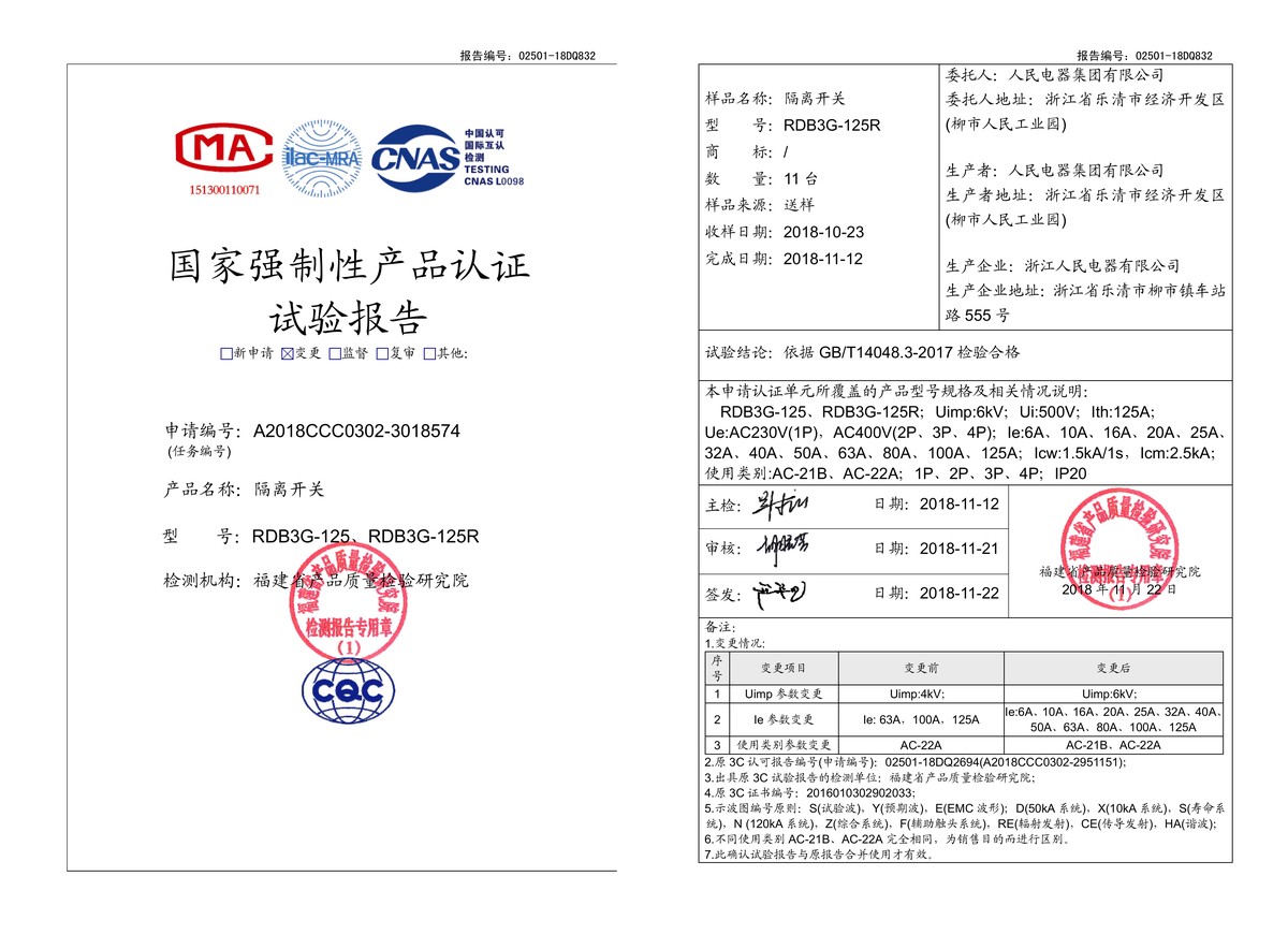CCC試驗(yàn)報(bào)告(201811):RDB3G-125,RDB3G-125R隔離開關(guān)(點(diǎn)擊下載)