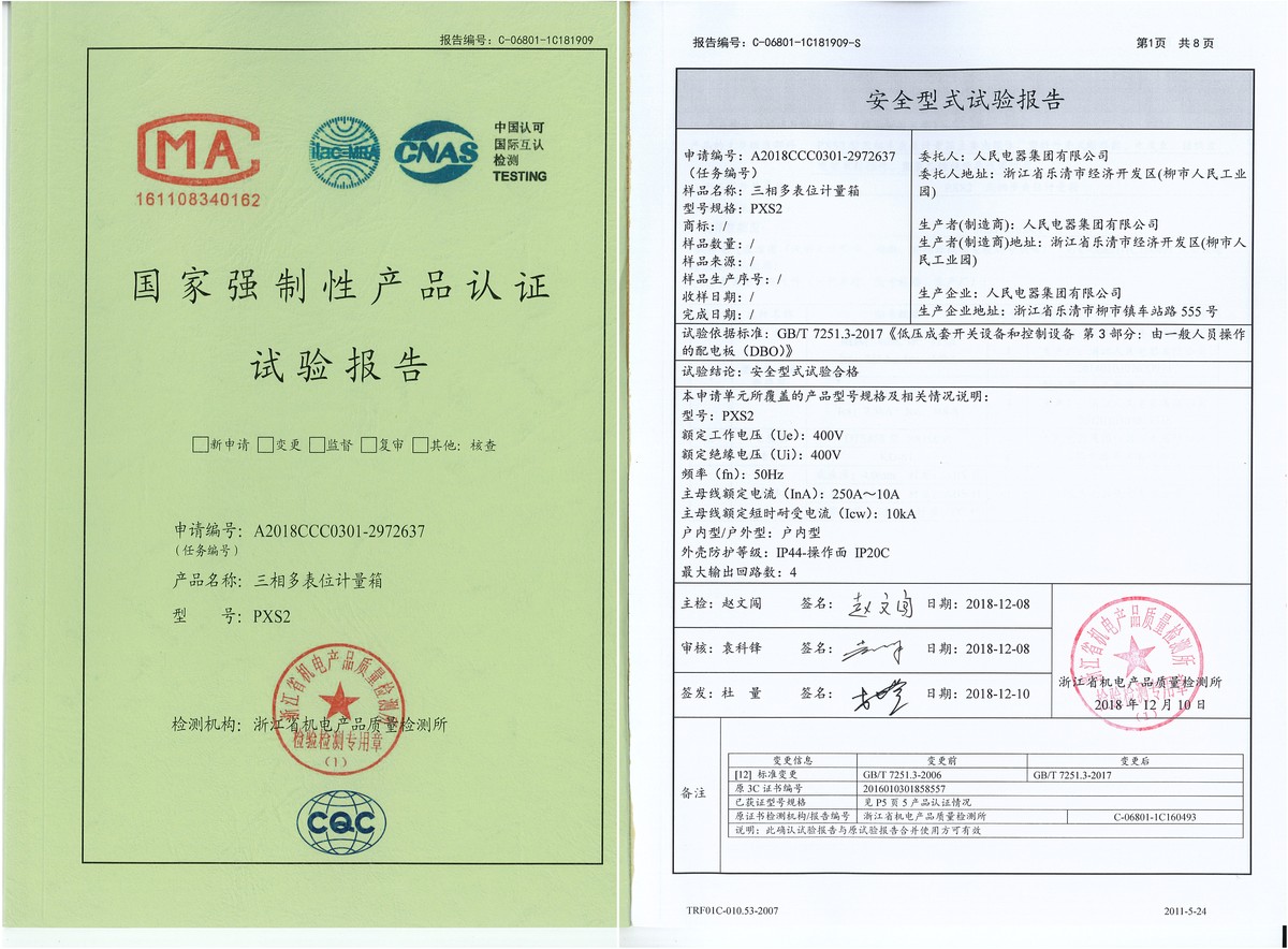 CCC試驗(yàn)報(bào)告(201812):PXS2三相多表位計(jì)量箱(點(diǎn)擊下載)