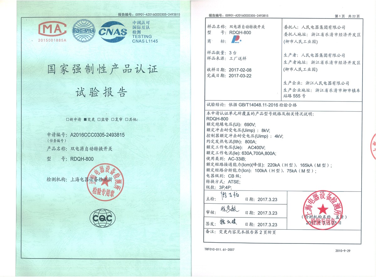 CCC試驗(yàn)報(bào)告(201703):RDQH-800雙電源自動(dòng)轉(zhuǎn)換開關(guān)(點(diǎn)擊下載)