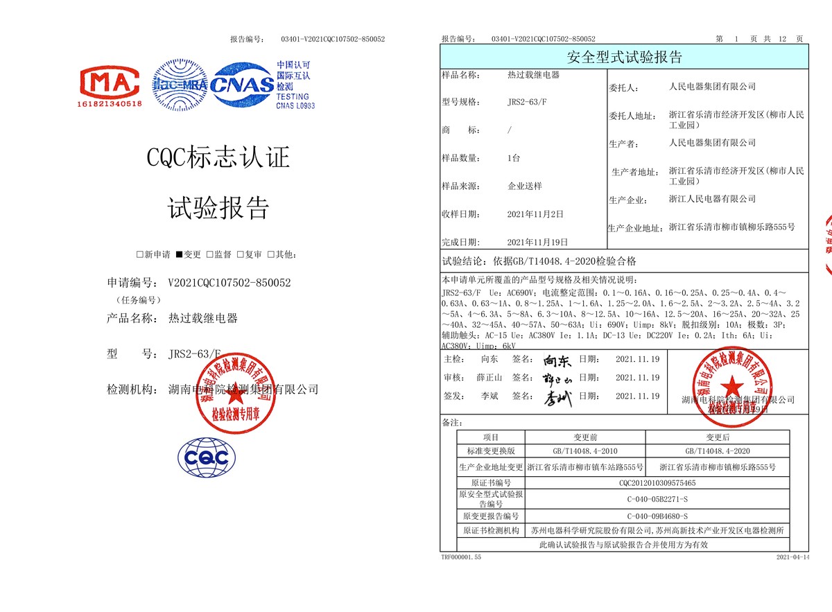CQC試驗報告(202111):JRS2-63/F熱過載繼電器(點擊下載)