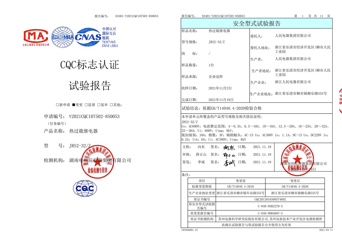 CQC試驗報告(202111):JRS2-32/Z熱過載繼電器(點擊下載)