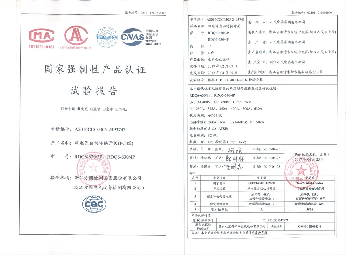 CCC試驗(yàn)報(bào)告(201704):RDQ6-630/3P,RDQ6-630/4P雙電源自動(dòng)轉(zhuǎn)換開關(guān)(點(diǎn)擊下載)