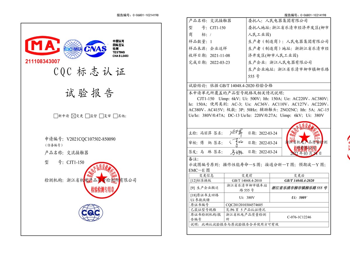 CQC試驗(yàn)報告(202203):CJT1-150交流接觸器(點(diǎn)擊下載)