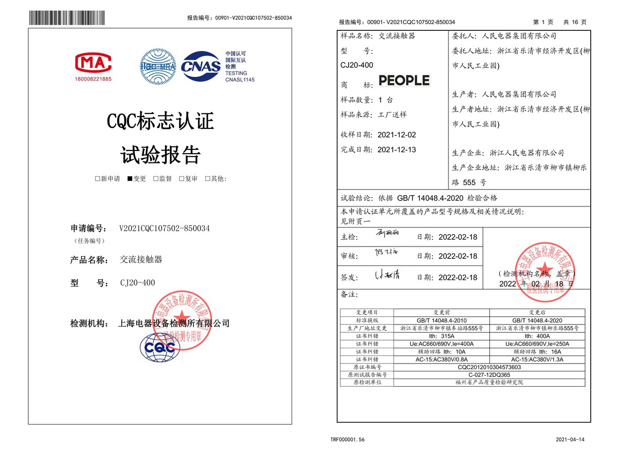CQC試驗(yàn)報(bào)告(202202):CJ20-400交流接觸器(點(diǎn)擊下載)