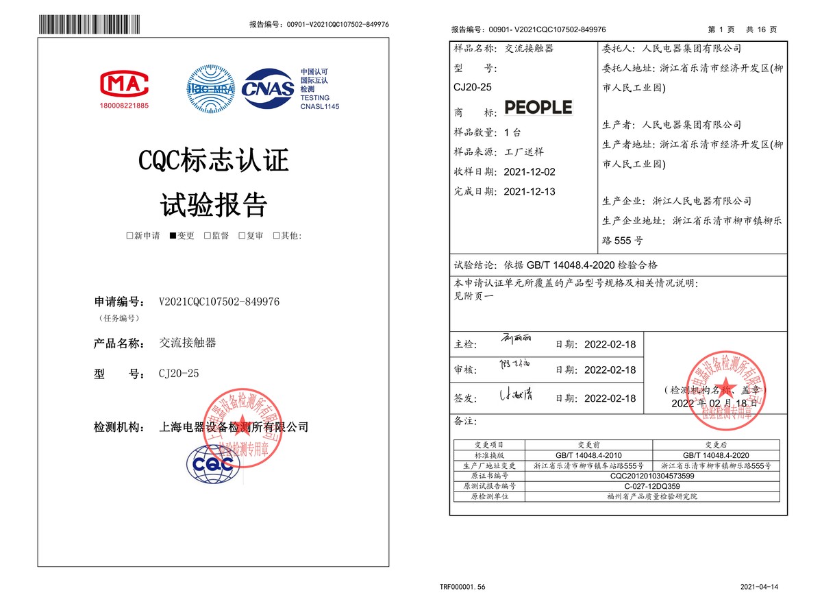 CQC試驗(yàn)報(bào)告(202202):CJ20-25交流接觸器(點(diǎn)擊下載)