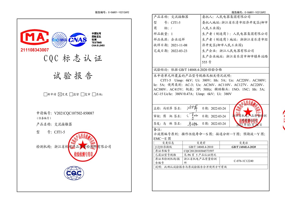 CQC試驗(yàn)報(bào)告(202203):CJT1-5交流接觸器(點(diǎn)擊下載)