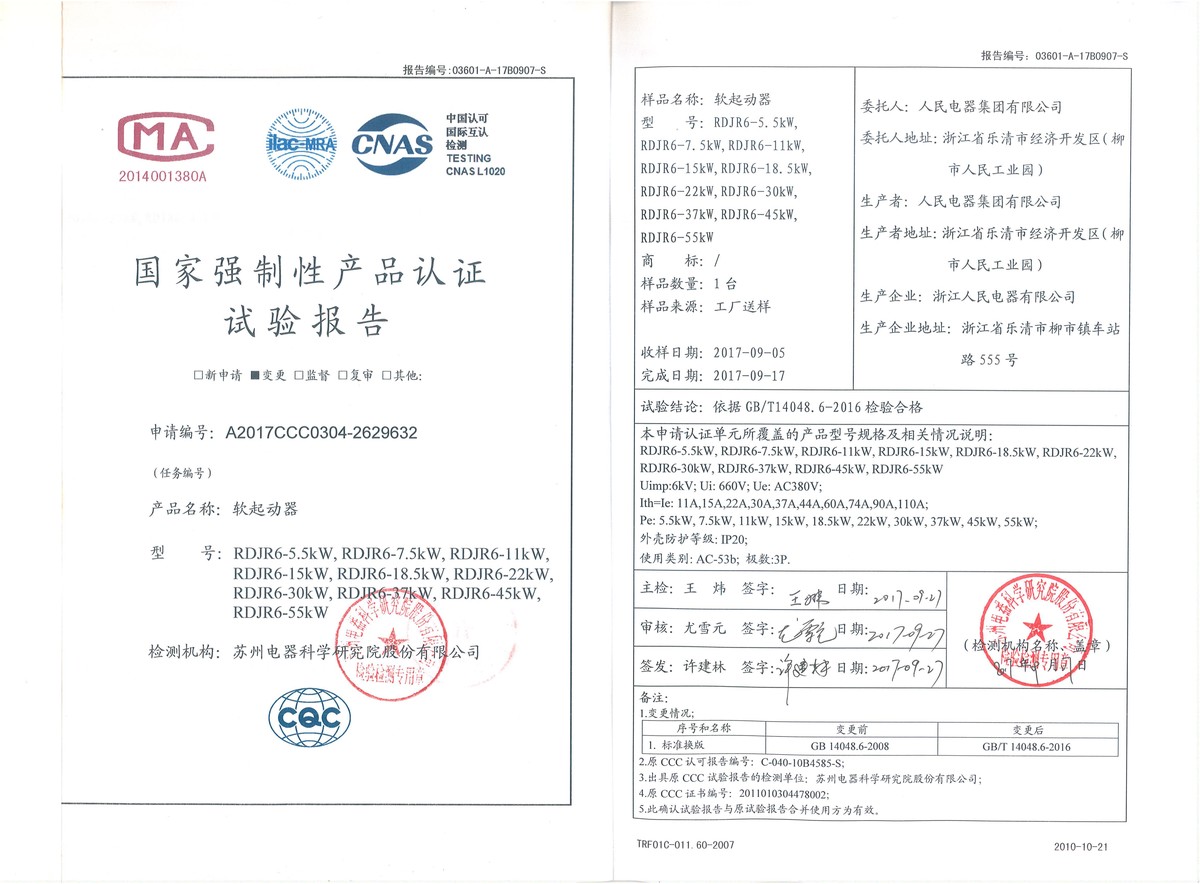 CCC試驗報告(201709):RDJR6-5.5kW, RDJR6-7.5kW, RDJR6-11kW, RDJR6-15kW, RDJR6-18.5kW, RDJR6-22kW, RDJR6-30...(點擊下載)