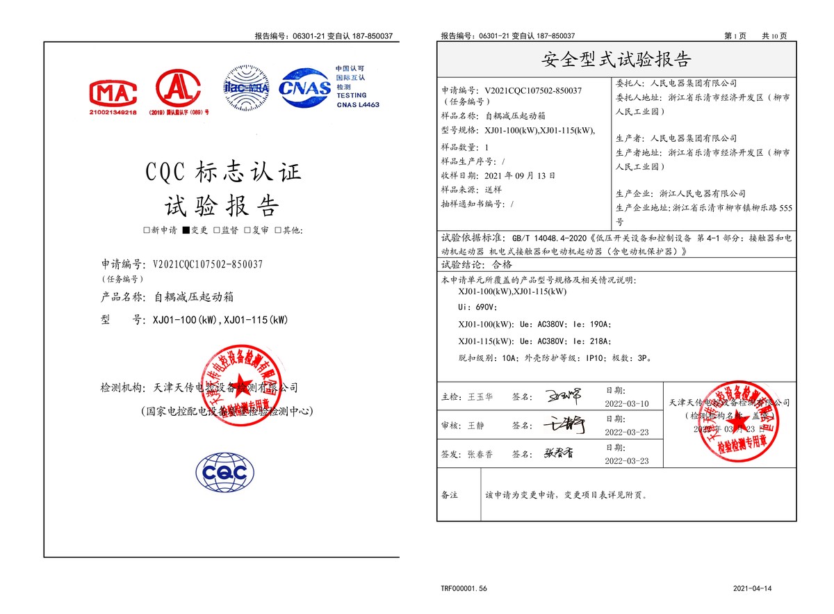 CQC試驗(yàn)報(bào)告(202203):XJ01-100,XJ01-115自耦減壓起動(dòng)箱(點(diǎn)擊下載)