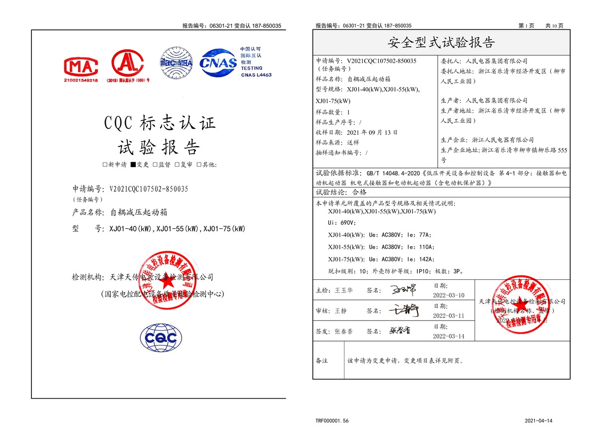 CQC試驗(yàn)報(bào)告(202203):XJ01-40,XJ01-55,XJ01-75自耦減壓起動(dòng)箱(點(diǎn)擊下載)