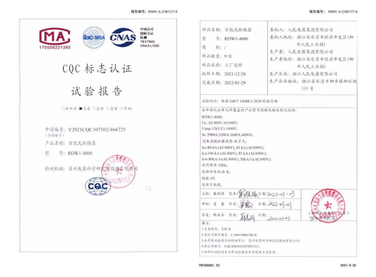 CQC試驗(yàn)報(bào)告(202203):RDW1-4000萬(wàn)能式斷路器(點(diǎn)擊下載)