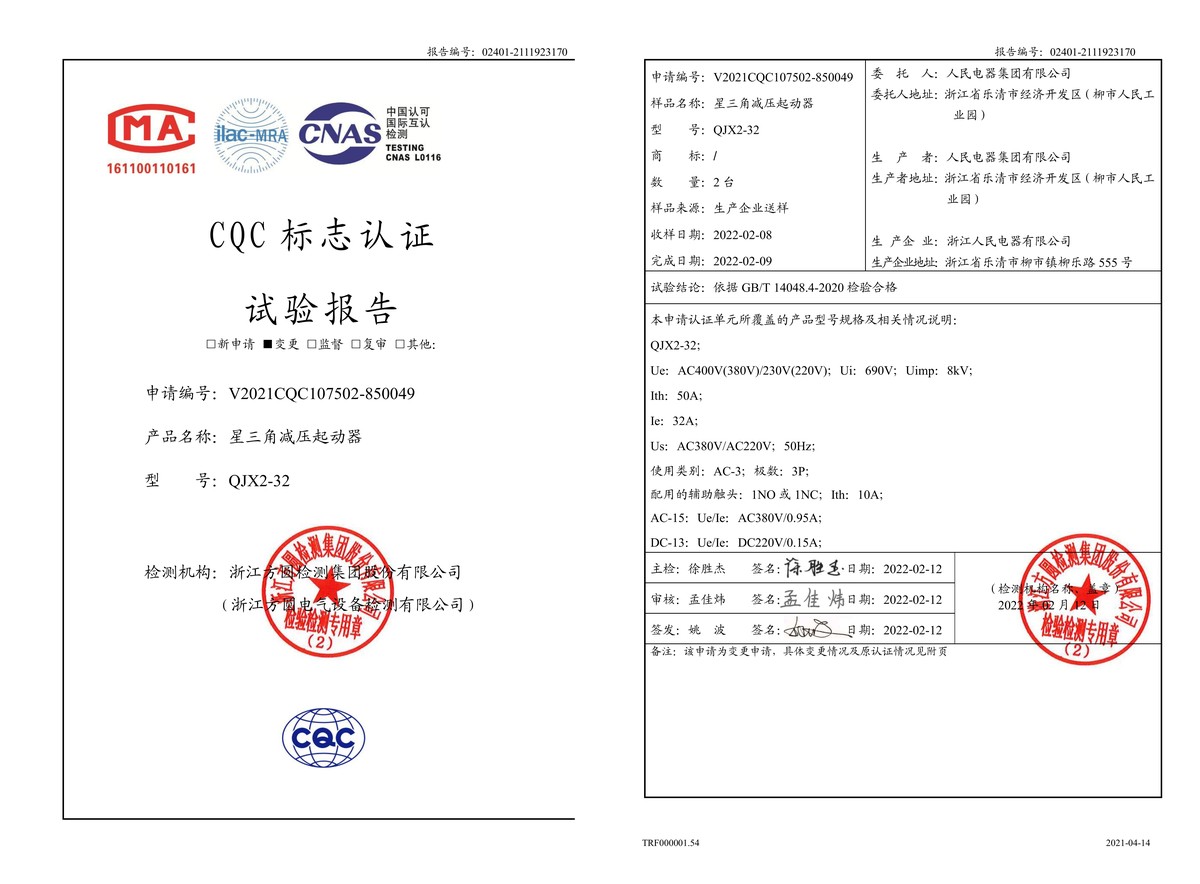 CQC試驗(yàn)報(bào)告(202202):QJX2-32星三角減壓起動器(點(diǎn)擊下載)