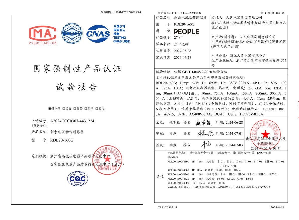 CCC試驗(yàn)報(bào)告(202407):RDL20-160G漏電斷路器(點(diǎn)擊下載)