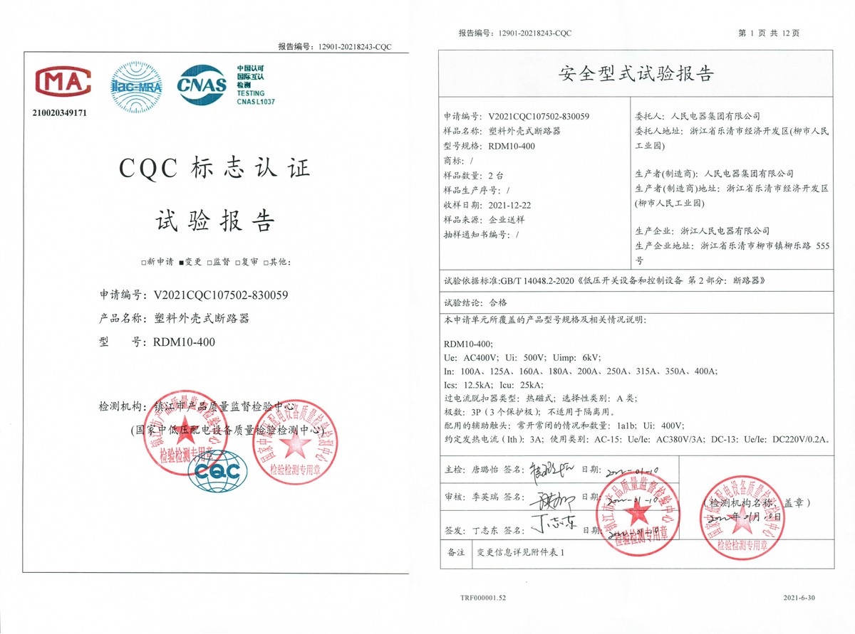 CQC試驗(yàn)報(bào)告(202201):RDM10-400塑料外殼式斷路器(點(diǎn)擊下載)