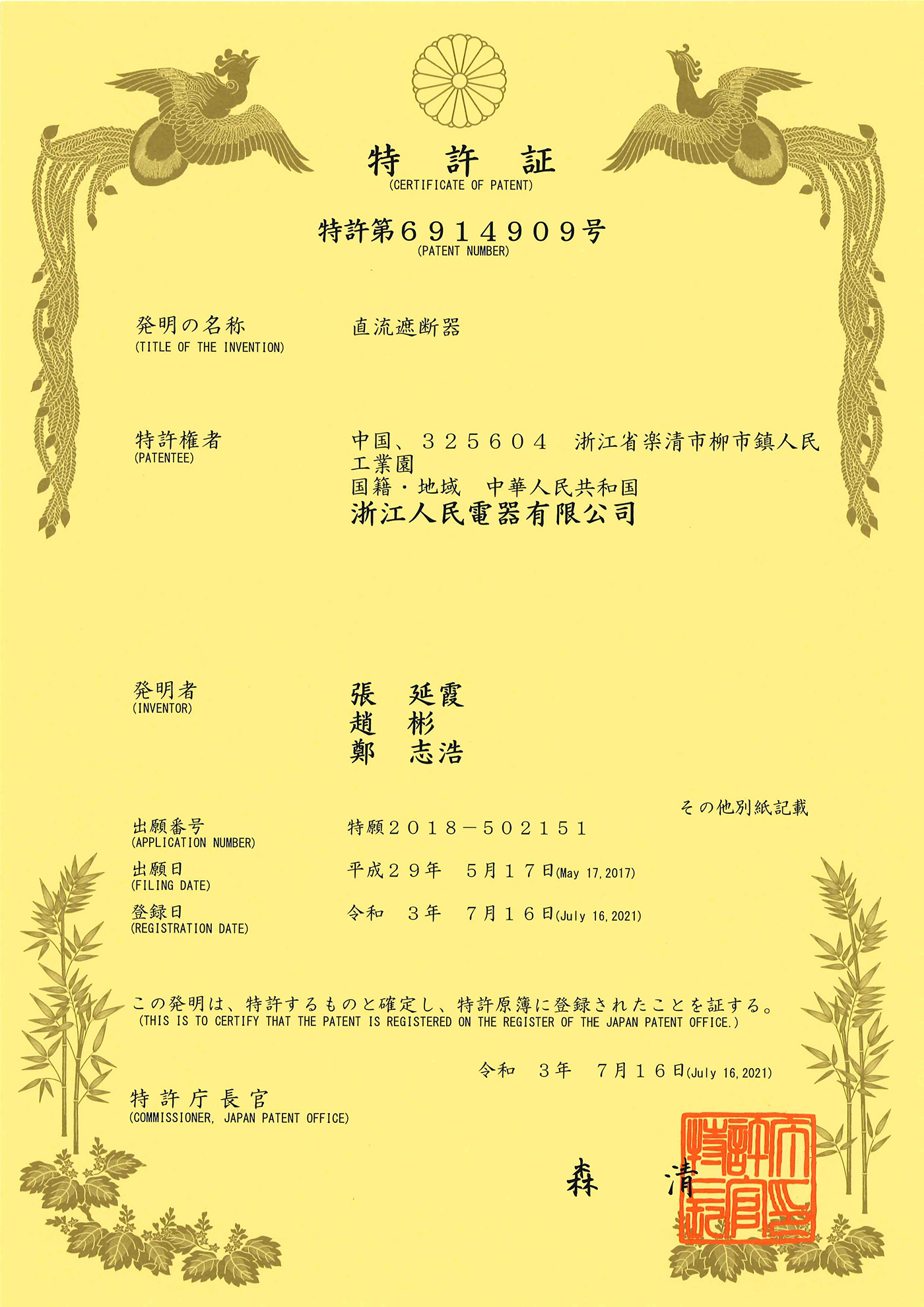 日本發(fā)明專利授權(quán):一種直流斷路器(點(diǎn)擊下載)