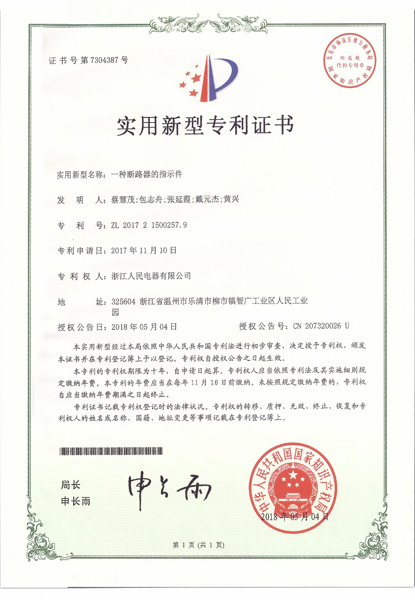 實(shí)用新型專利證書:一種斷路器的指示件(點(diǎn)擊下載)