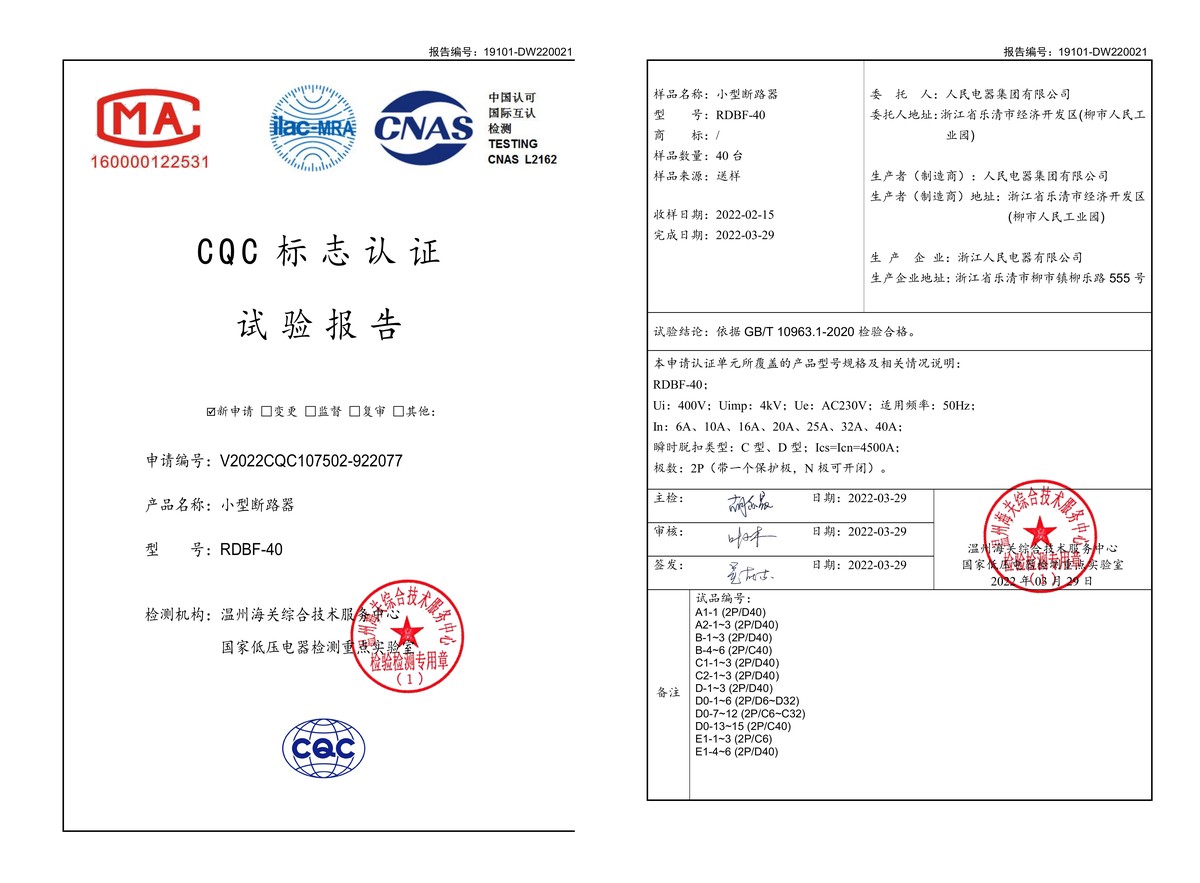 CQC試驗(yàn)報(bào)告(202203):RDBF-40小型斷路器(點(diǎn)擊下載)