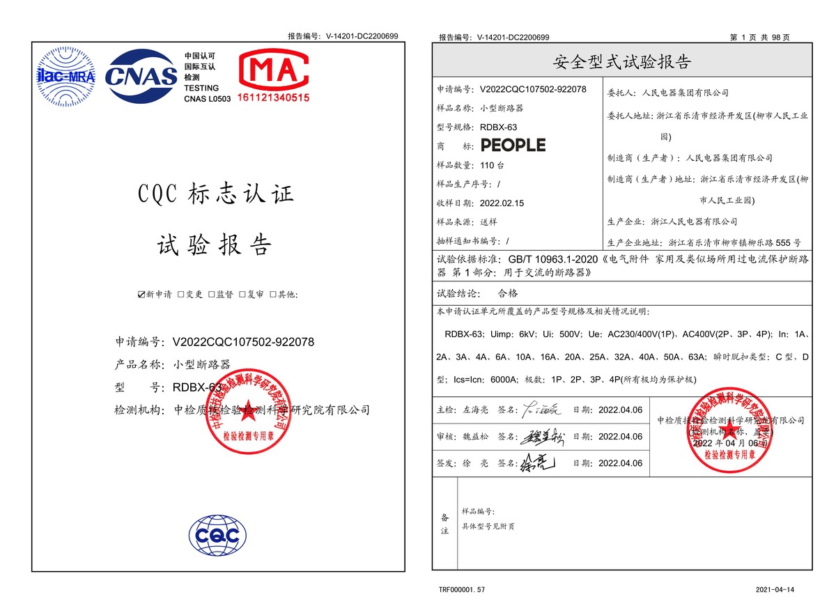 CQC試驗(yàn)報(bào)告(202204):RDBX-63小型斷路器(點(diǎn)擊下載)