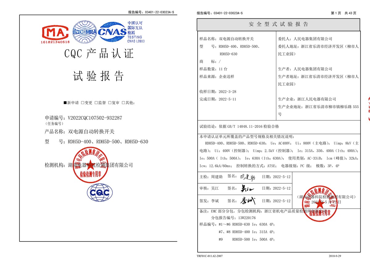 CQC試驗(yàn)報(bào)告(202205):RDH5D-400,RDH5D-500,RDH5D-630雙電源自動(dòng)轉(zhuǎn)換開(kāi)關(guān)(點(diǎn)擊下載)