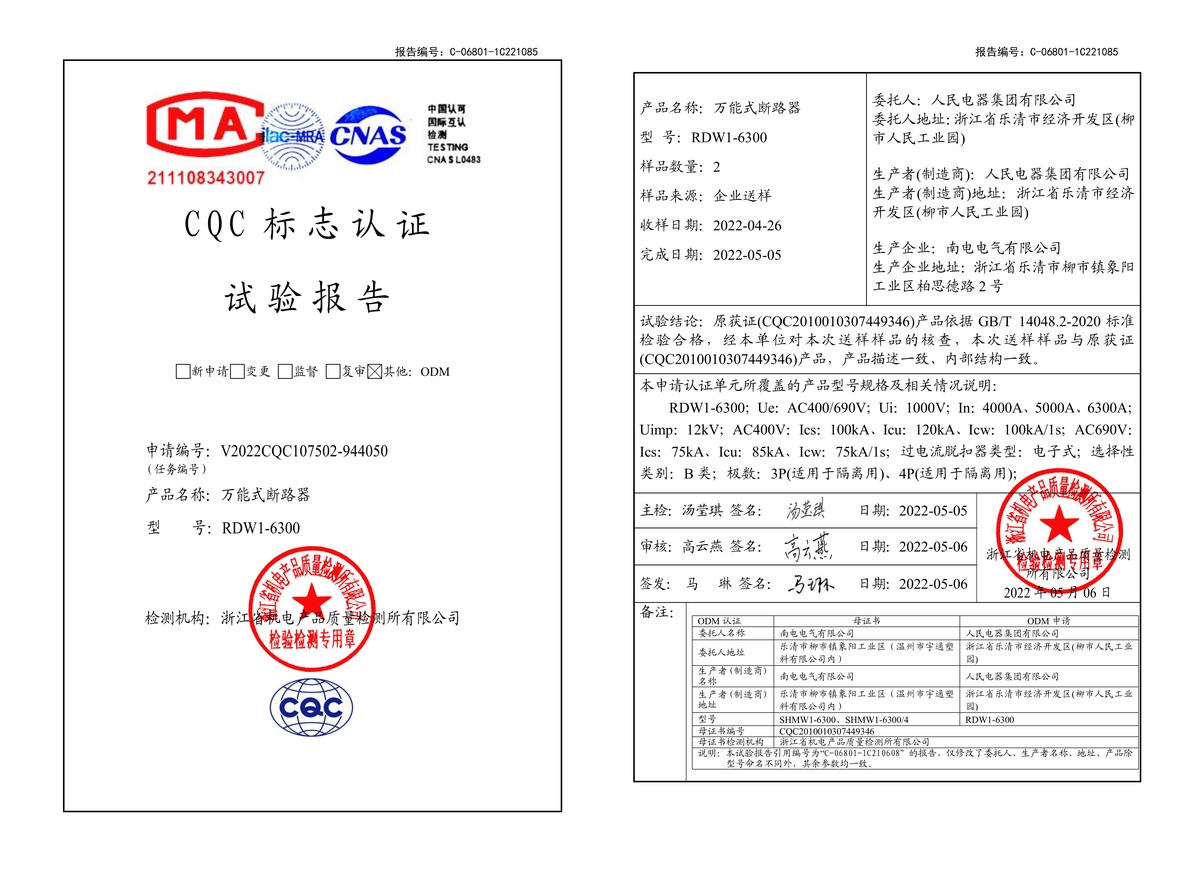 CQC試驗(yàn)報(bào)告(202205):RDW1-6300萬能式斷路器(點(diǎn)擊下載)