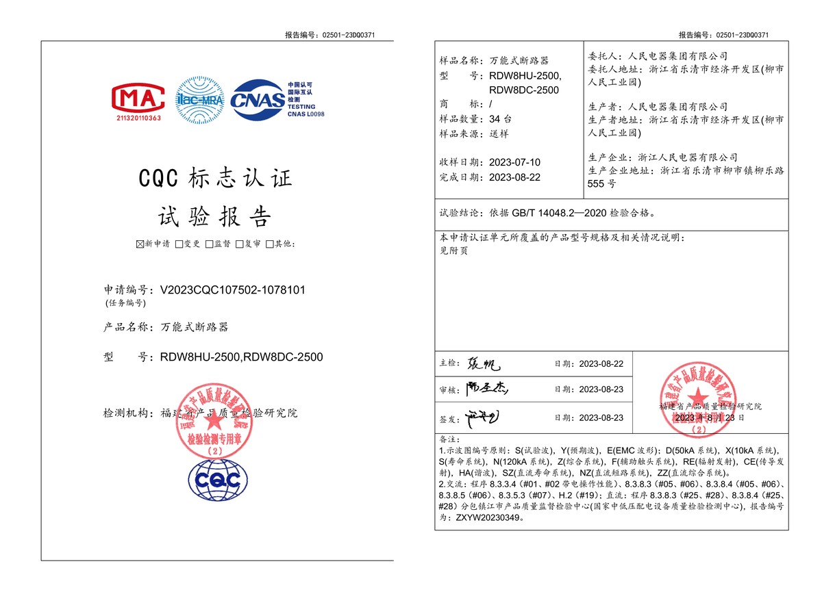CQC試驗(yàn)報(bào)告(202308):RDW8HU-2500,RDW8DC-2500萬能式斷路器(點(diǎn)擊下載)