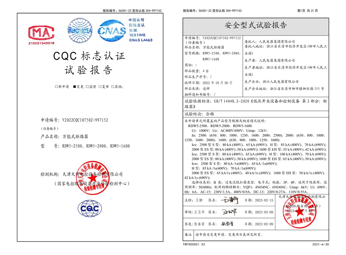 CQC試驗(yàn)報(bào)告(202303):RDW5-2500,RDW5-2000,RDW5-1600萬(wàn)能式斷路器(點(diǎn)擊下載)