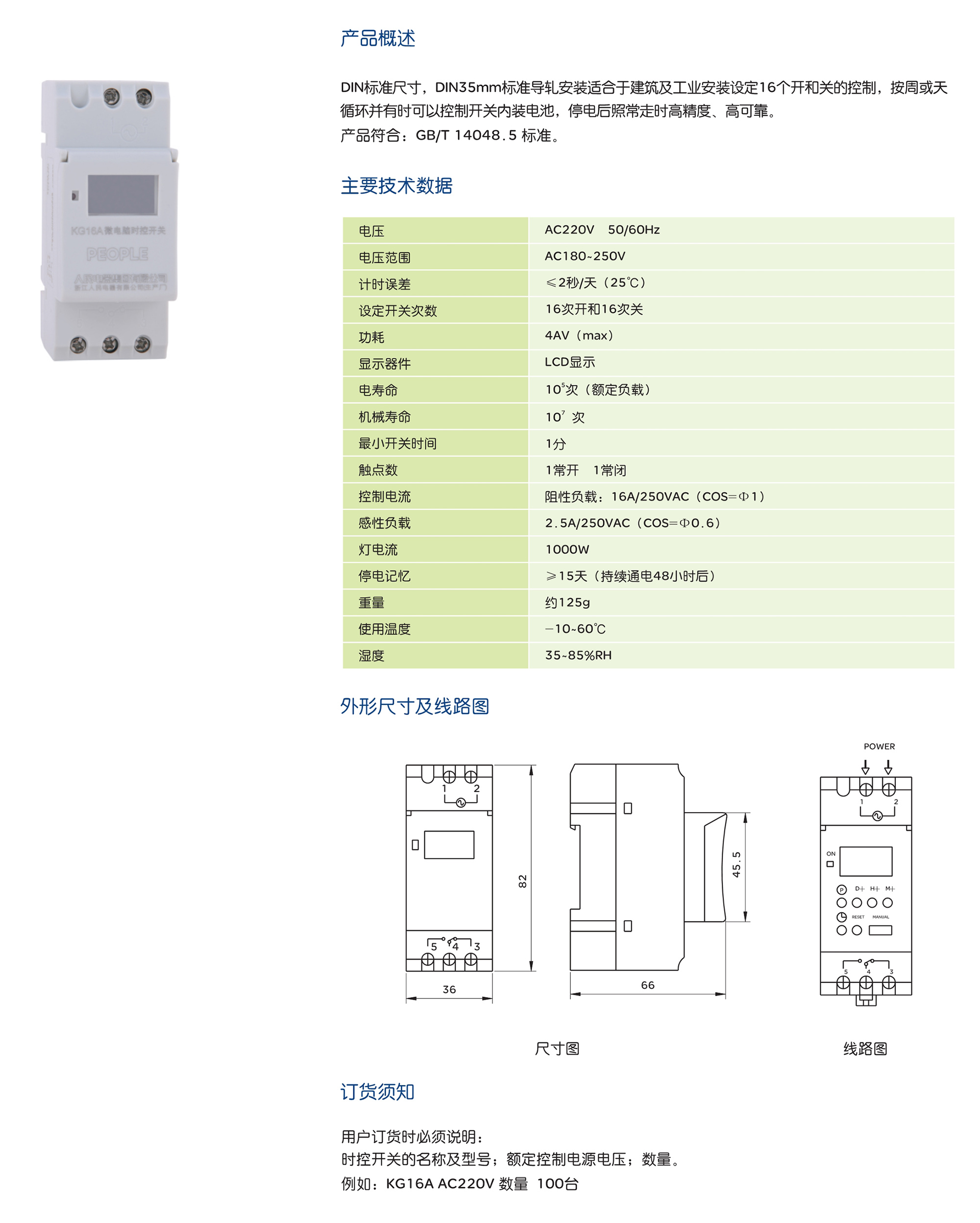 DIN標(biāo)準(zhǔn)尺寸,DIN35mm標(biāo)準(zhǔn)導(dǎo)軋安裝適合于建筑及工業(yè)安裝設(shè)定16個(gè)開和關(guān)的控制,按周或天循環(huán)并有時(shí)可以控制開關(guān)內(nèi)裝電池,停電后腙常走時(shí)高精度、高可靠。