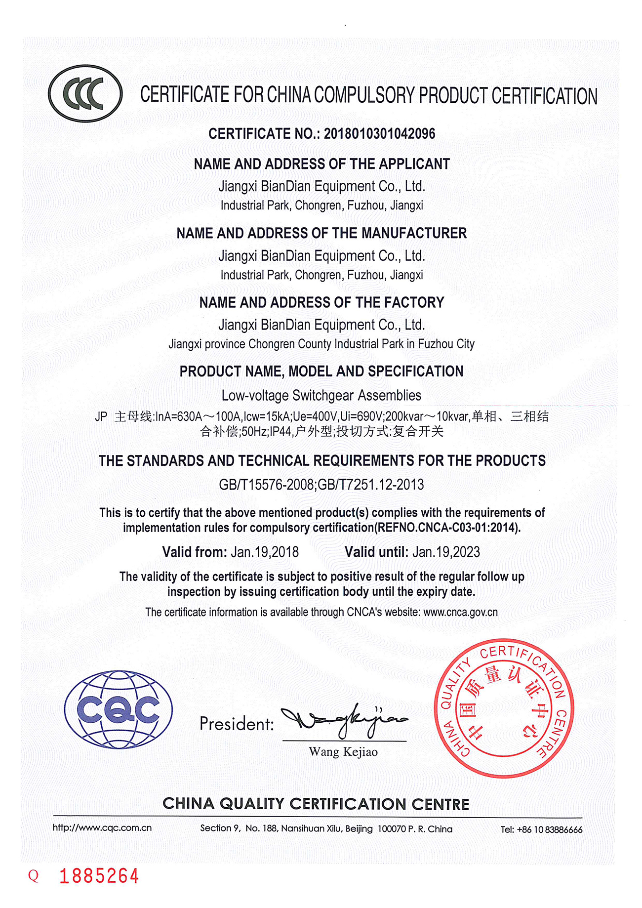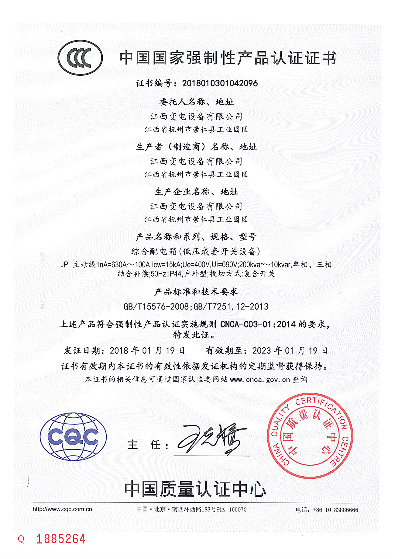 綜合配電箱(低壓成套開關(guān)設(shè)備) JP (證書編號(hào):2018010301042096)(點(diǎn)擊下載)