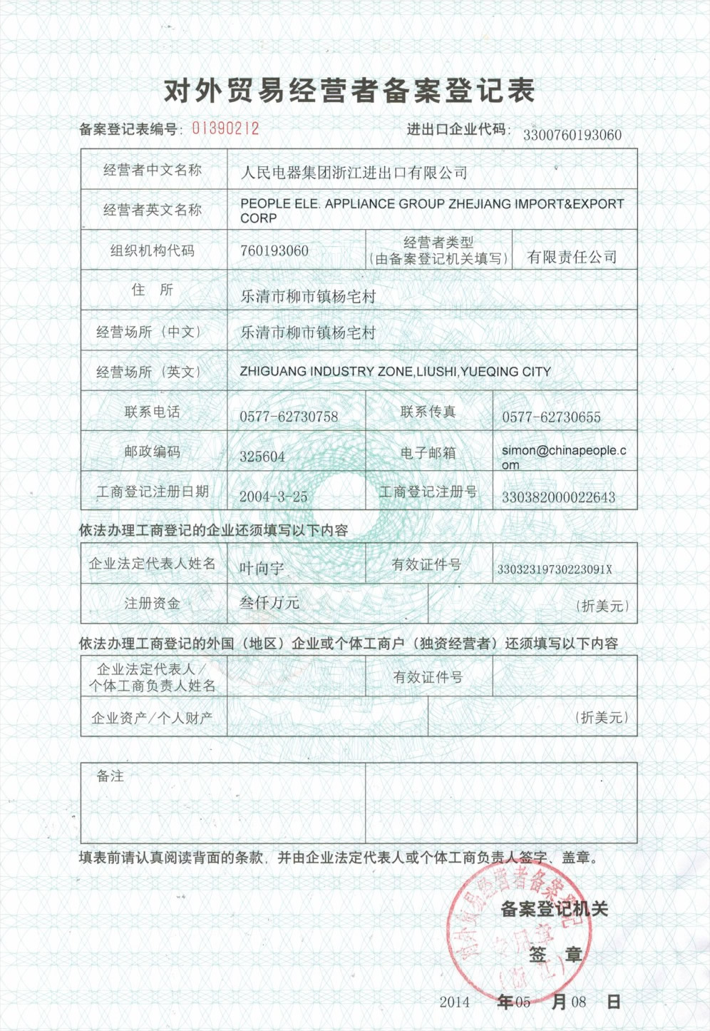 對外貿(mào)易經(jīng)營者備案登記表(點擊下載)
