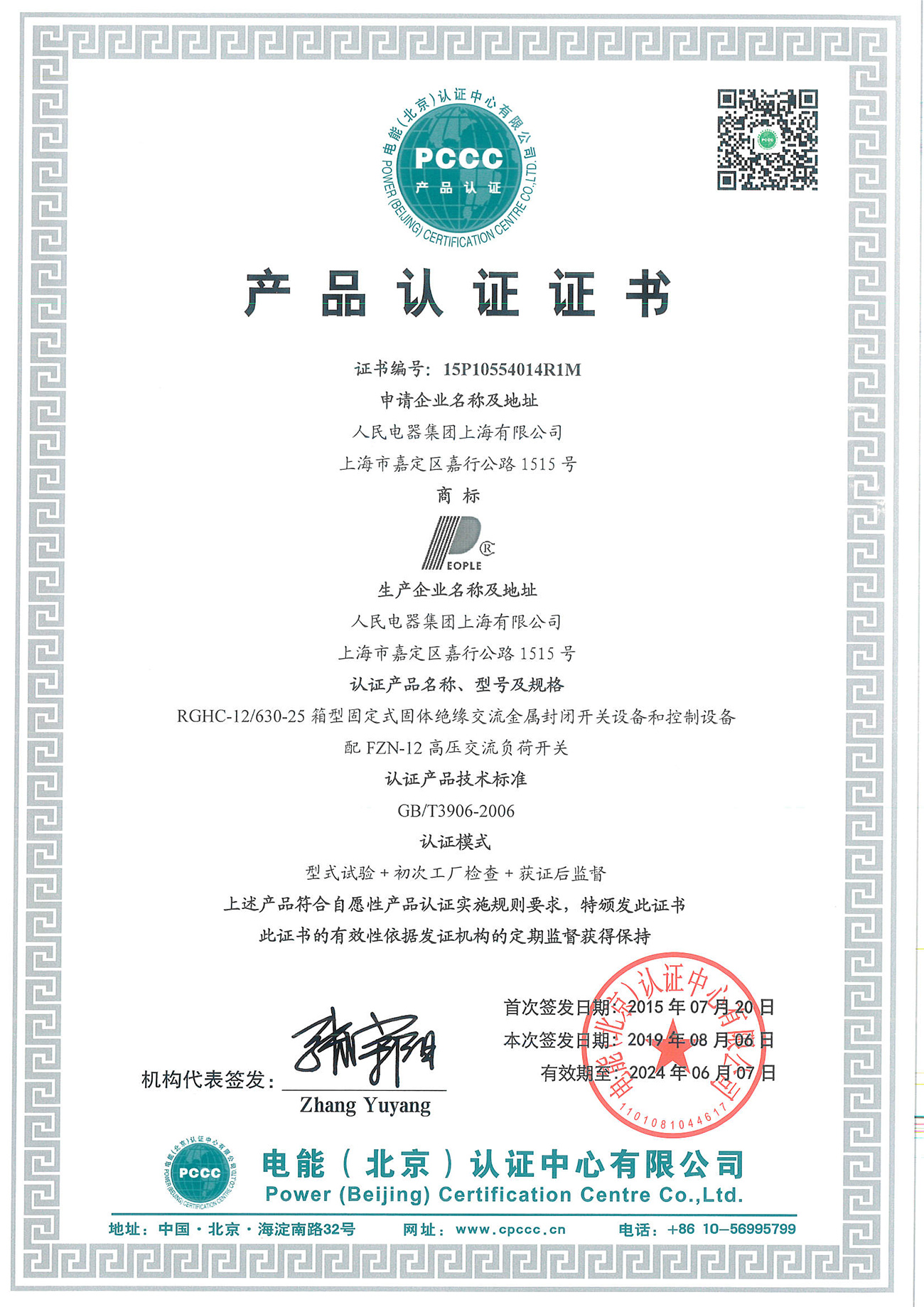 產(chǎn)品認(rèn)證證書:RGHC-12/630-25箱型固定式固體絕緣交流金屬封閉開關(guān)設(shè)備和控制設(shè)備配FZN-12高壓交流負(fù)荷開關(guān)(點擊下載)
