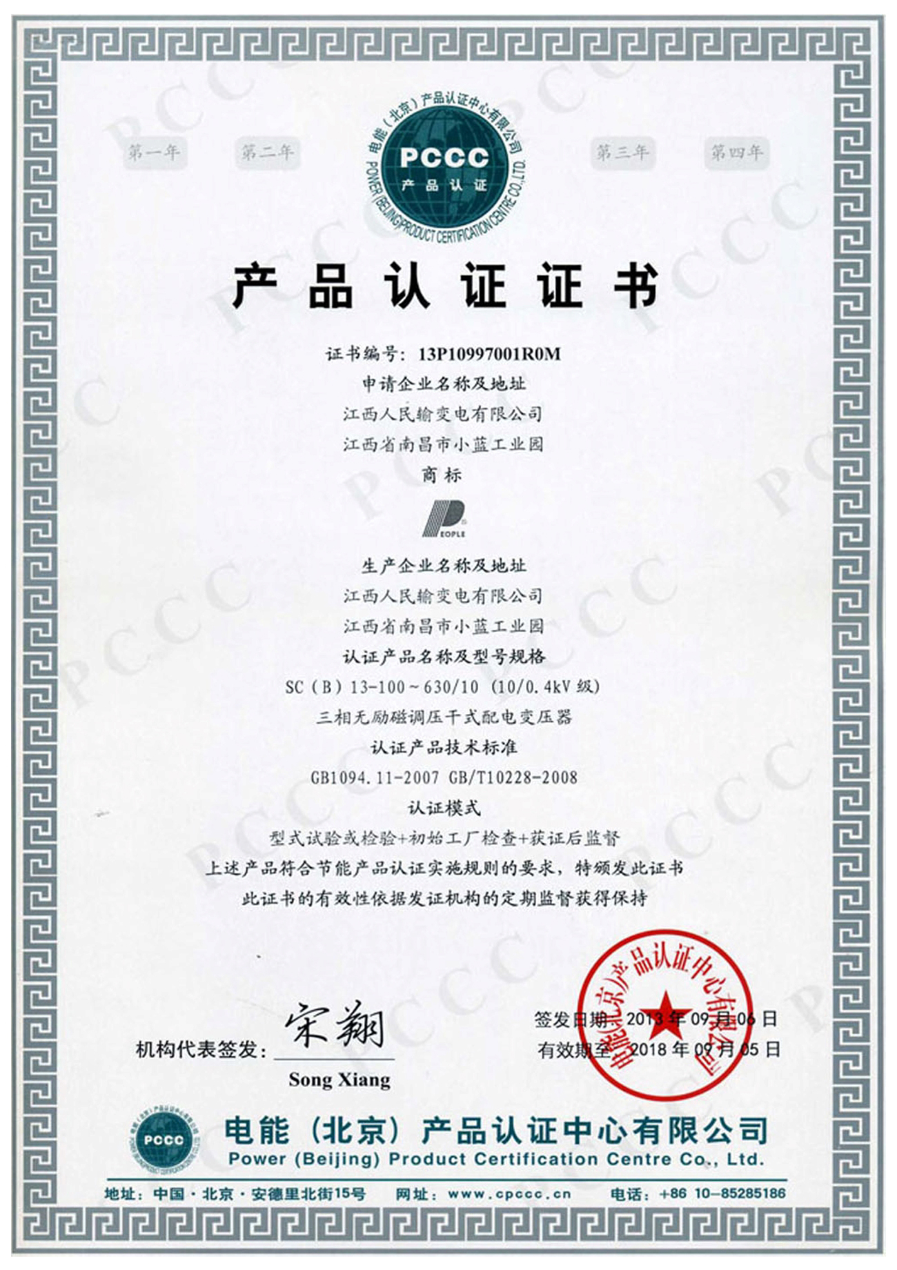 節(jié)能產(chǎn)品認(rèn)證證書:SC(B)13-100~630/10(10/0.4kV級)三相無勵磁調(diào)壓干式配電變壓器(點(diǎn)擊下載)