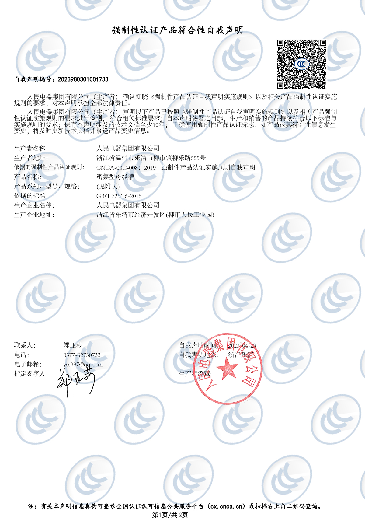 自我聲明認(rèn)證:CCX InA=1600A~400A密集型母線槽(編號:2023980301001733)(點(diǎn)擊下載)