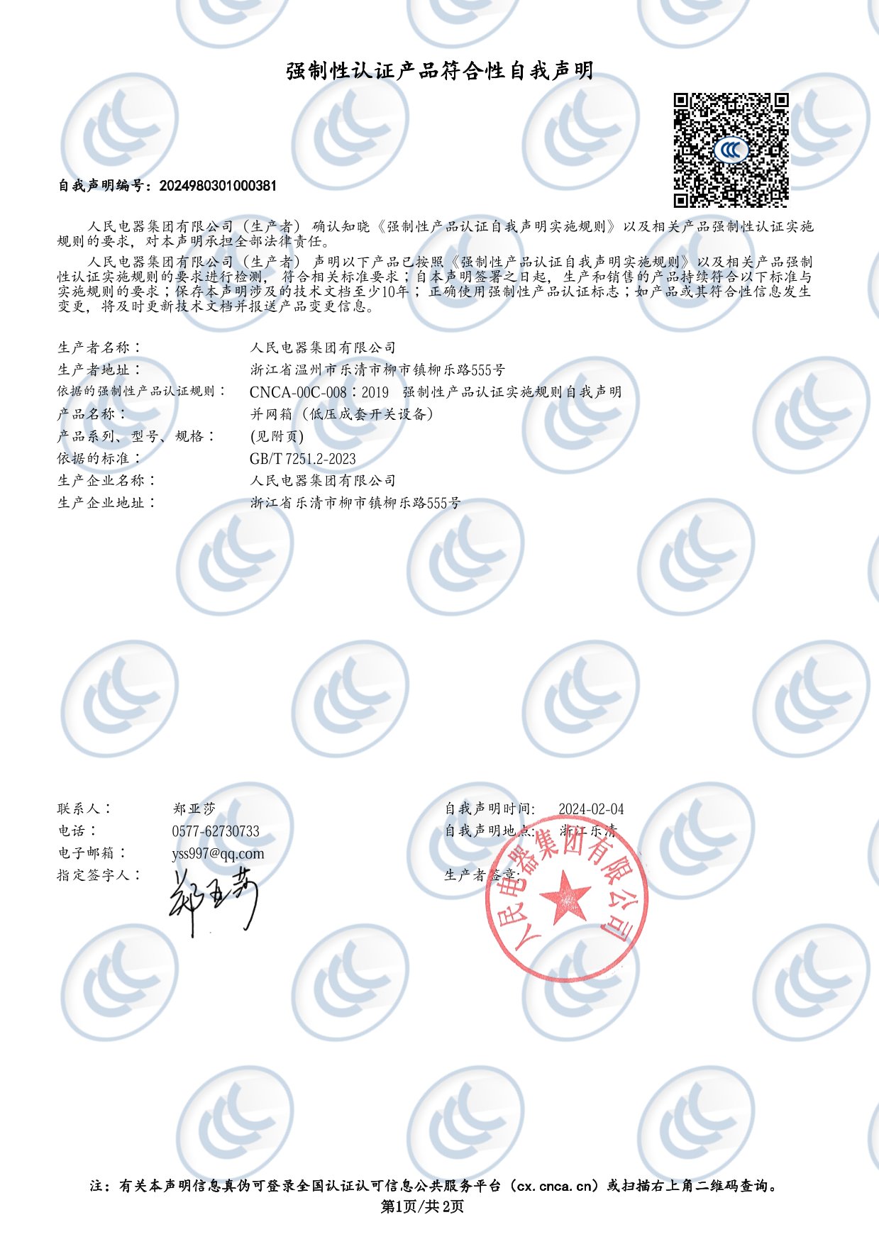 自我聲明認(rèn)證:RDPV8-B-50并網(wǎng)箱(低壓成套開關(guān)設(shè)備)(編號:2024980301000381)(點(diǎn)擊下載)