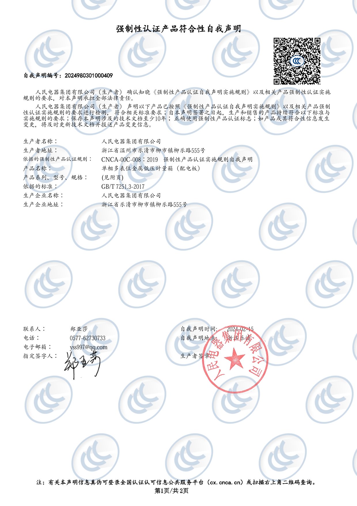 自我聲明認(rèn)證:DX-J-9HS單相多表位金屬低壓計(jì)量箱(配電板)(編號(hào):2024980301000409)(點(diǎn)擊下載)