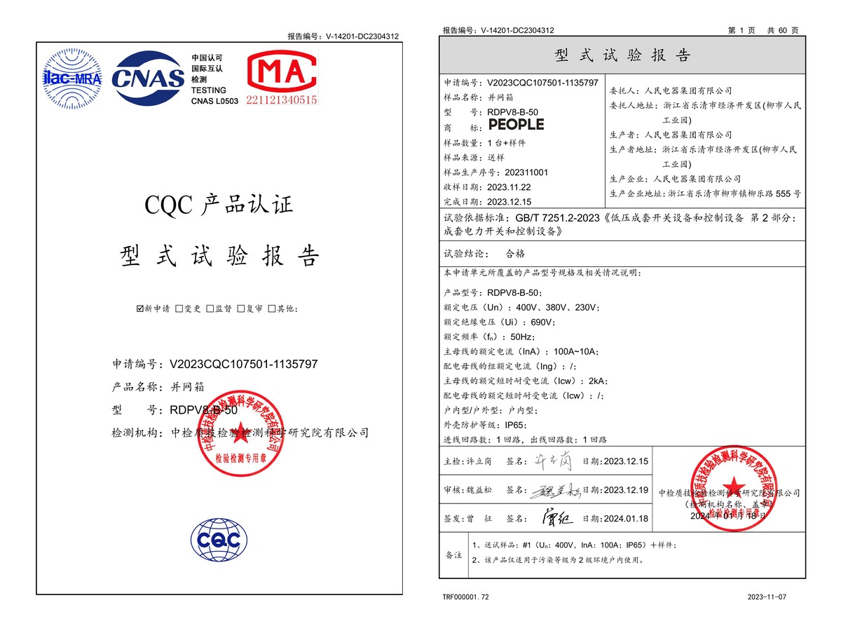 CQC試驗(yàn)報(bào)告(202401):RDPV8-B-50并網(wǎng)箱(點(diǎn)擊下載)
