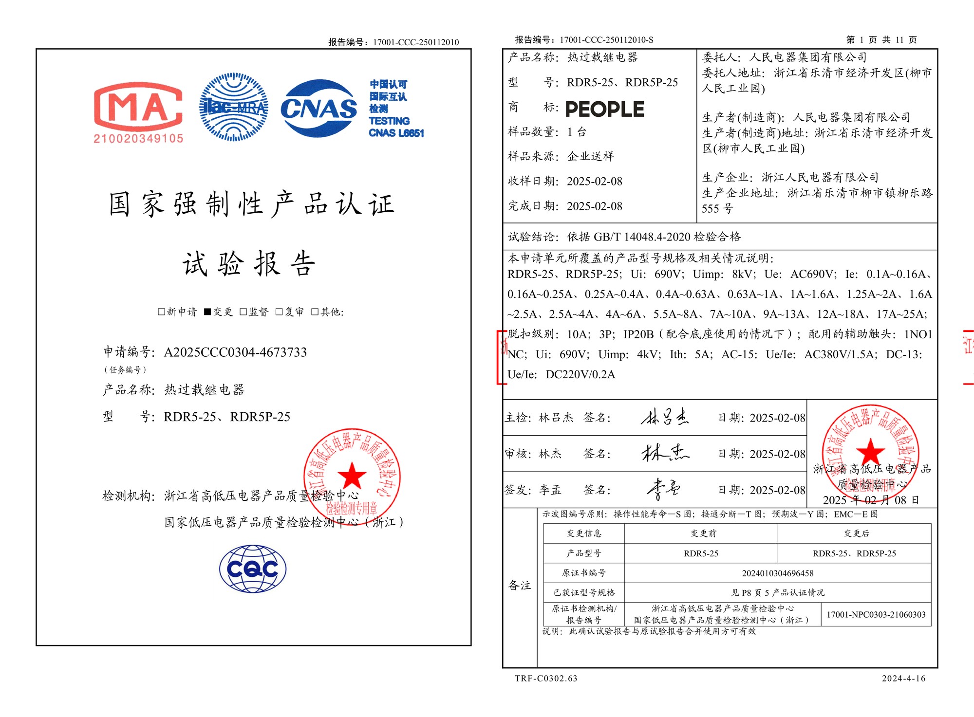 CCC試驗(yàn)報告(202502):RDR5-25,RDR5P-25熱過載繼電器(點(diǎn)擊下載)