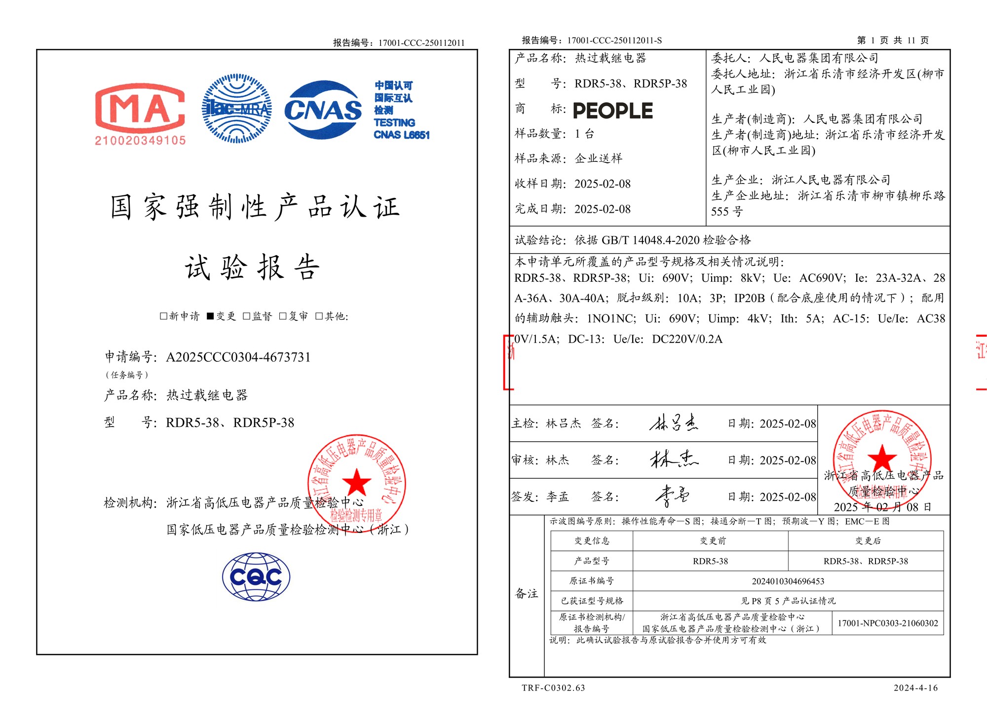 CCC試驗(yàn)報(bào)告(202502):RDR5-38,RDR5P-38熱過(guò)載繼電器(點(diǎn)擊下載)