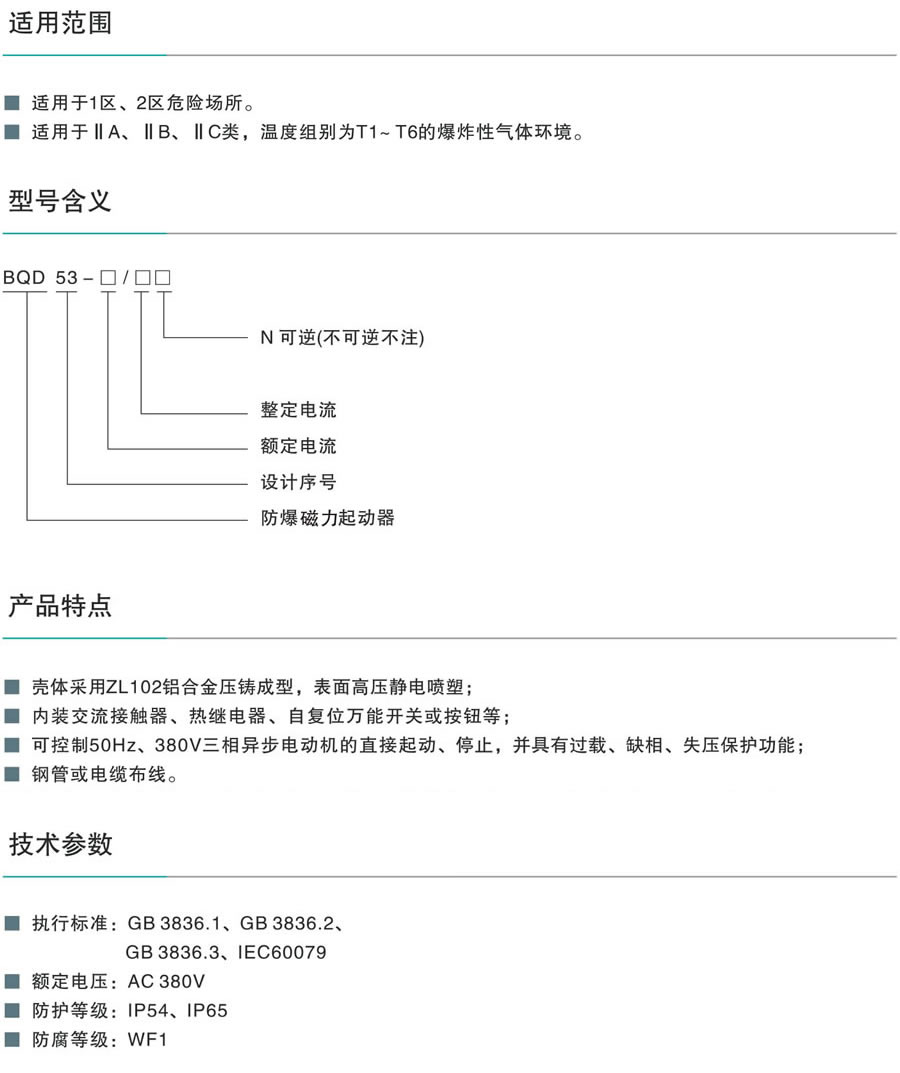 BQD53系列防爆磁力起動器(ⅡB、ⅡC)