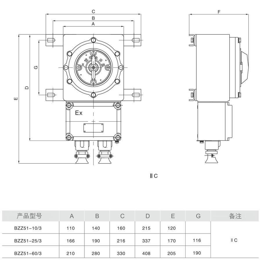 > BZZ51系列隔離型防爆轉(zhuǎn)換開關(guān)(ⅡB、ⅡC)