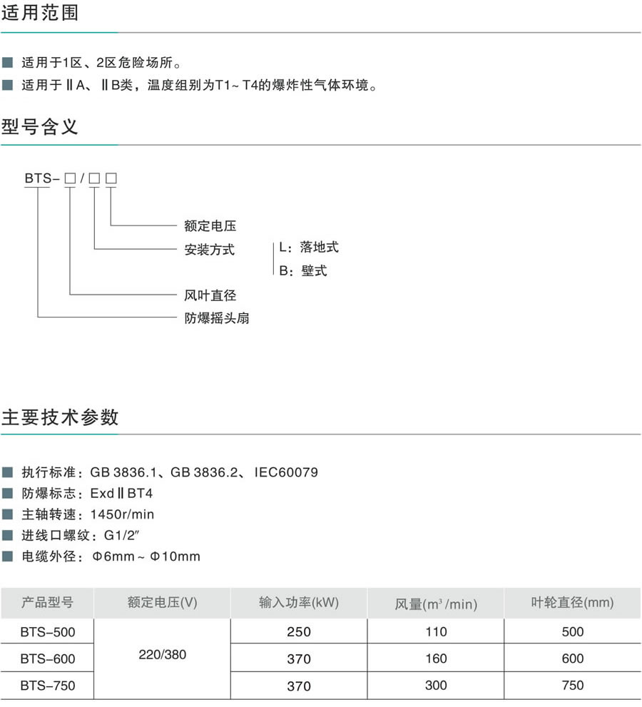 BTS系列防爆搖頭扇(II B)