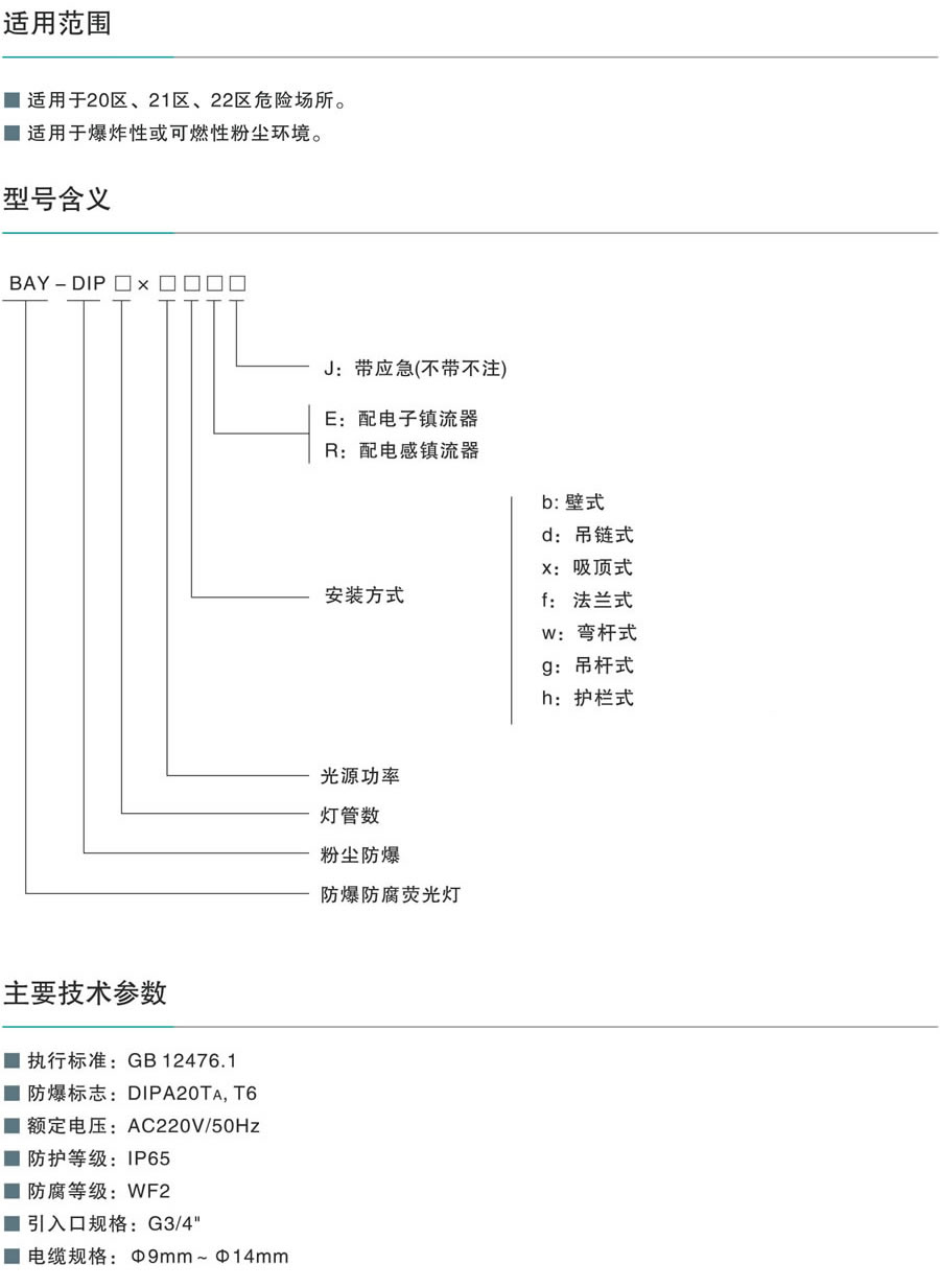 BAY-DIP系列粉塵防爆防腐熒光燈(DIP)