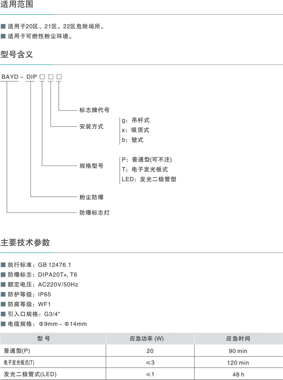 BAYD-DIP系列粉塵防爆標(biāo)志燈(DIP)