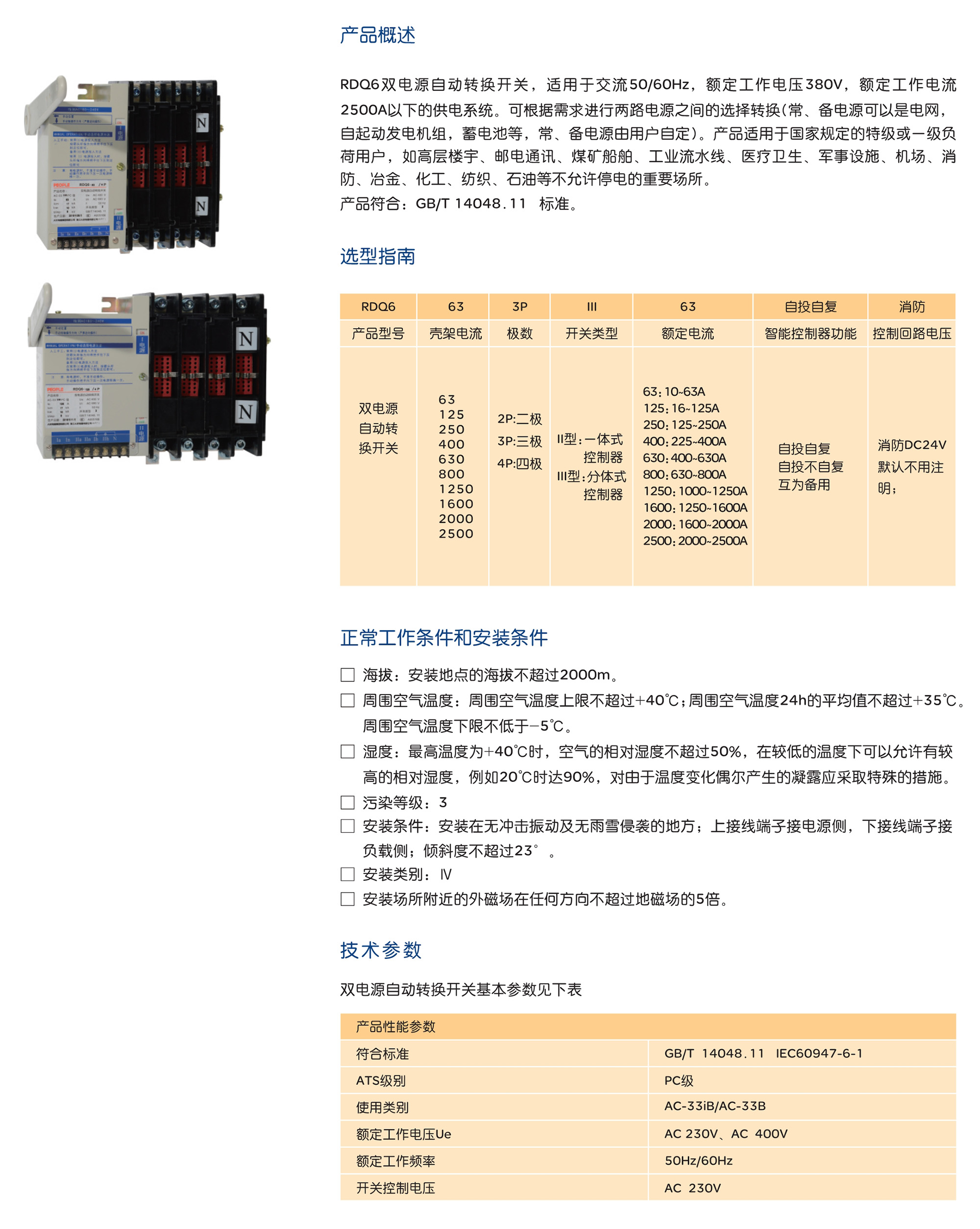 人民電器RDQ6雙電源自動轉(zhuǎn)換開關(guān)