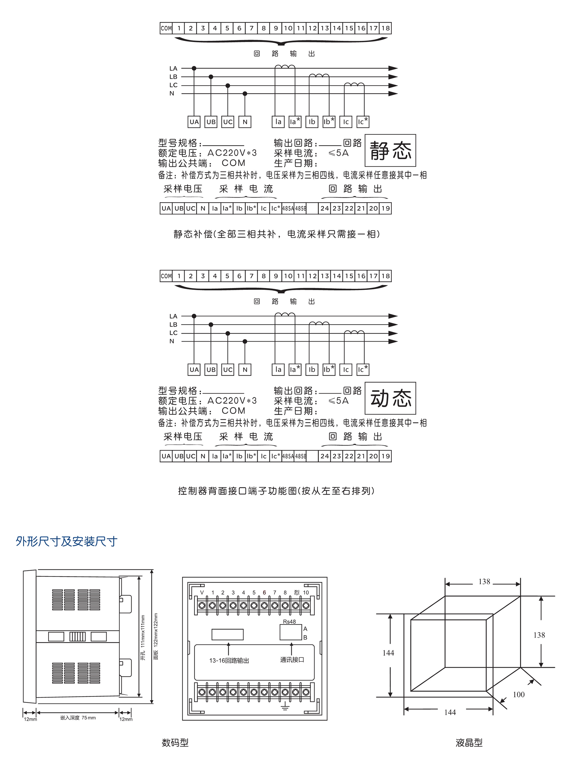 JKWRF系列無功功率自動(dòng)補(bǔ)償控制器,以高速高性能的微處理器為核心器件同時(shí)取樣3相電壓3相電流信號(hào),并提供6種分補(bǔ)+共補(bǔ)補(bǔ)償方案,12種投切編碼方案,用戶可通過修改控制參數(shù)任意選擇,控制參數(shù)一經(jīng)修改永久保存,掉電不丟失。采用基波功率因數(shù)和基波無功率復(fù)合控制電容器組的投切,投切穩(wěn)定無投切震蕩,對(duì)電壓諧波電流諧波干擾不敏感。