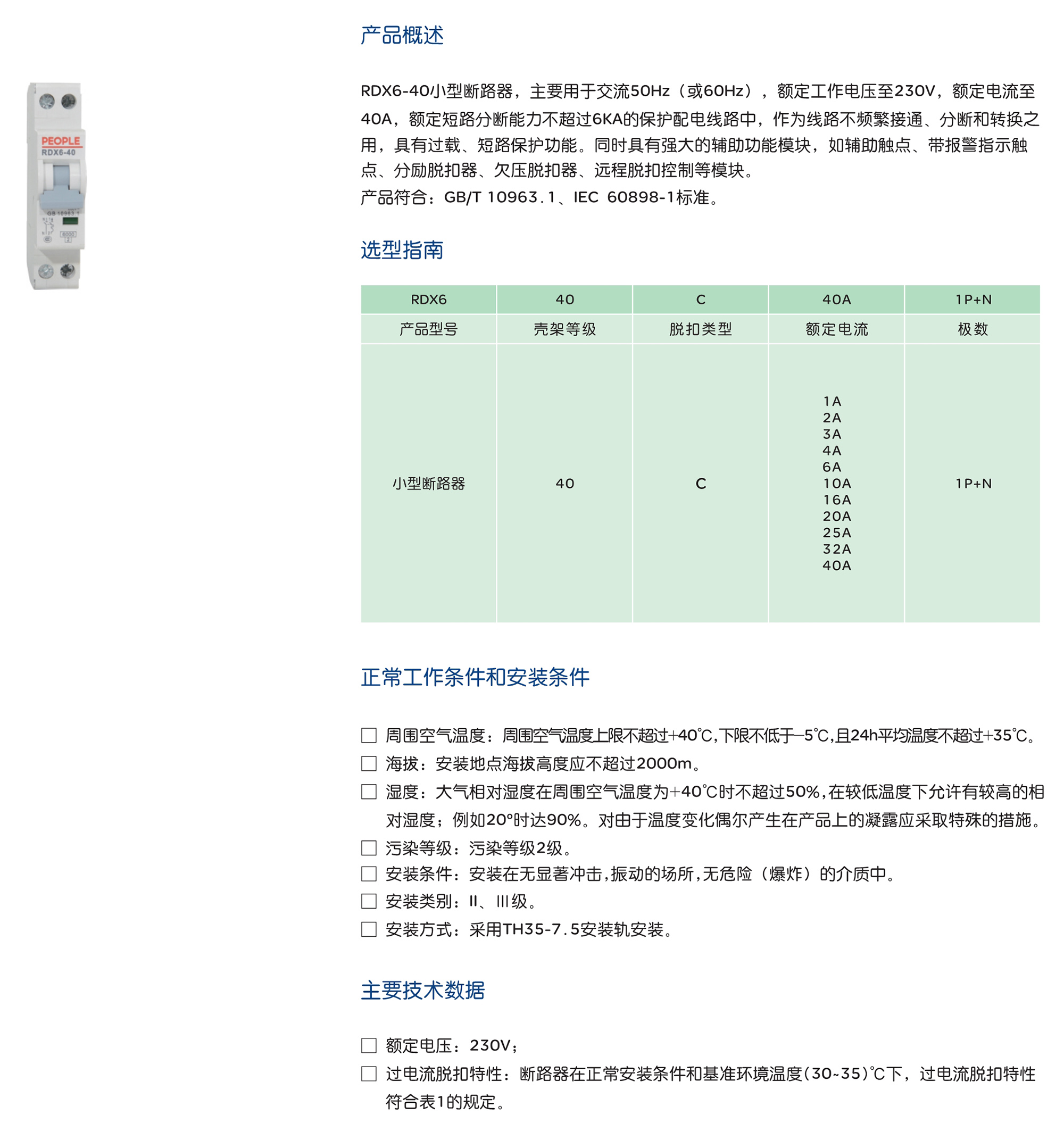 產(chǎn)品符合:GB/T 10963.1、IEC 60898-1標準。